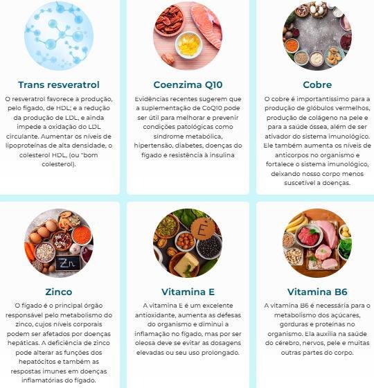 - Coenzima Q10 (CoQ10): Essencial para a energia celular, sua ação antioxidante auxilia na proteção do fígado, um órgão de alta demanda energética e metabólica.